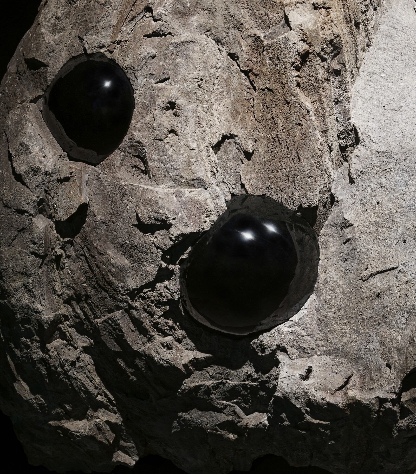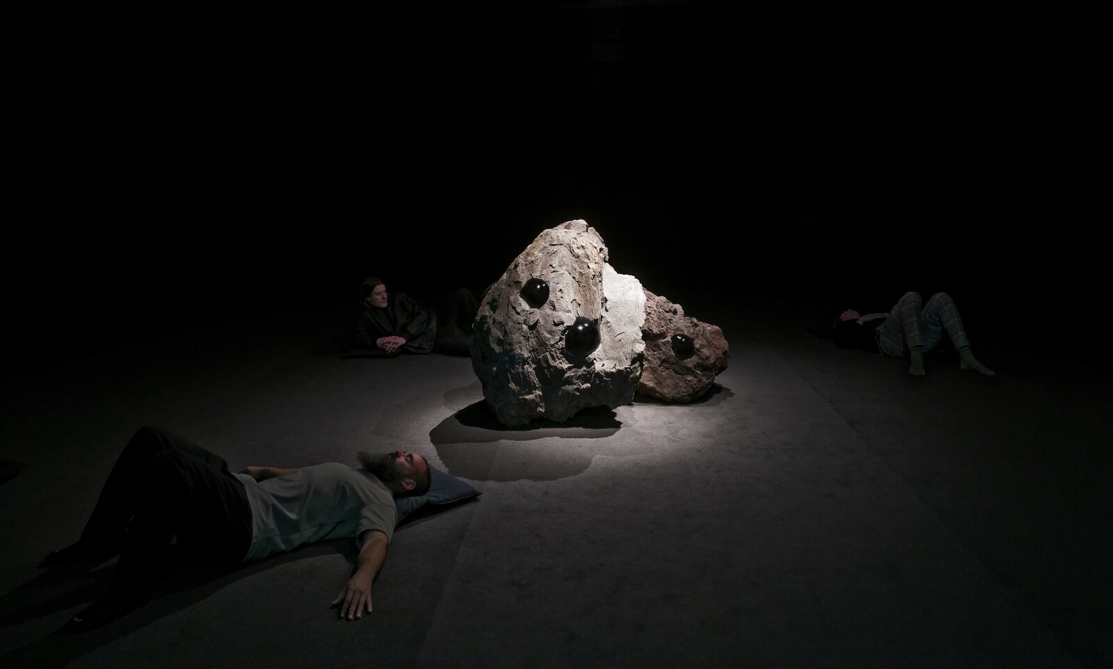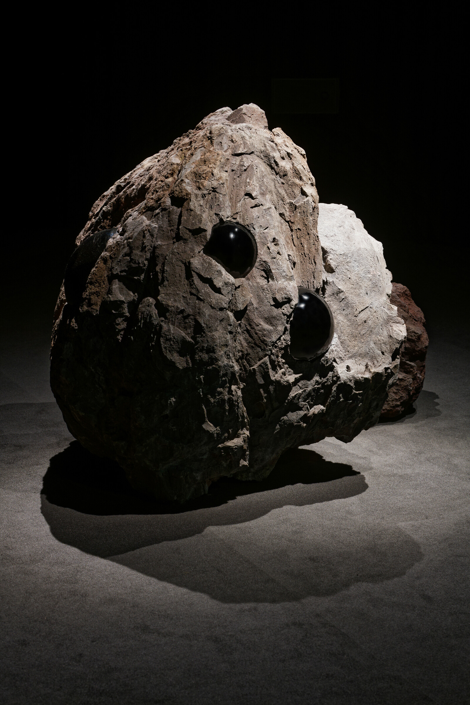 Stone Speakers is an immersive multimedia installation produced in collaboration with Felix Deufel and Victor Mazon. The piece uses a 4D sound system that transports the visitor to the surface and depths of six distinct volcanoes. Based on field recordings from Mount Etna (Italy), Litli-Hrútur (Iceland), Nevado del Ruiz (Colombia), Erta Ale (Ethiopia), Mount Sindoro, and Mount Bromo (Indonesia), the sound composition is constantly transforming, modulated by transitions between the volcanic sites, their activity, and live data streams from local seismic monitoring stations. At the heart of the exhibition is A Stone Dream of You, a series of sculptures made from volcanic rock and obsidian glass.