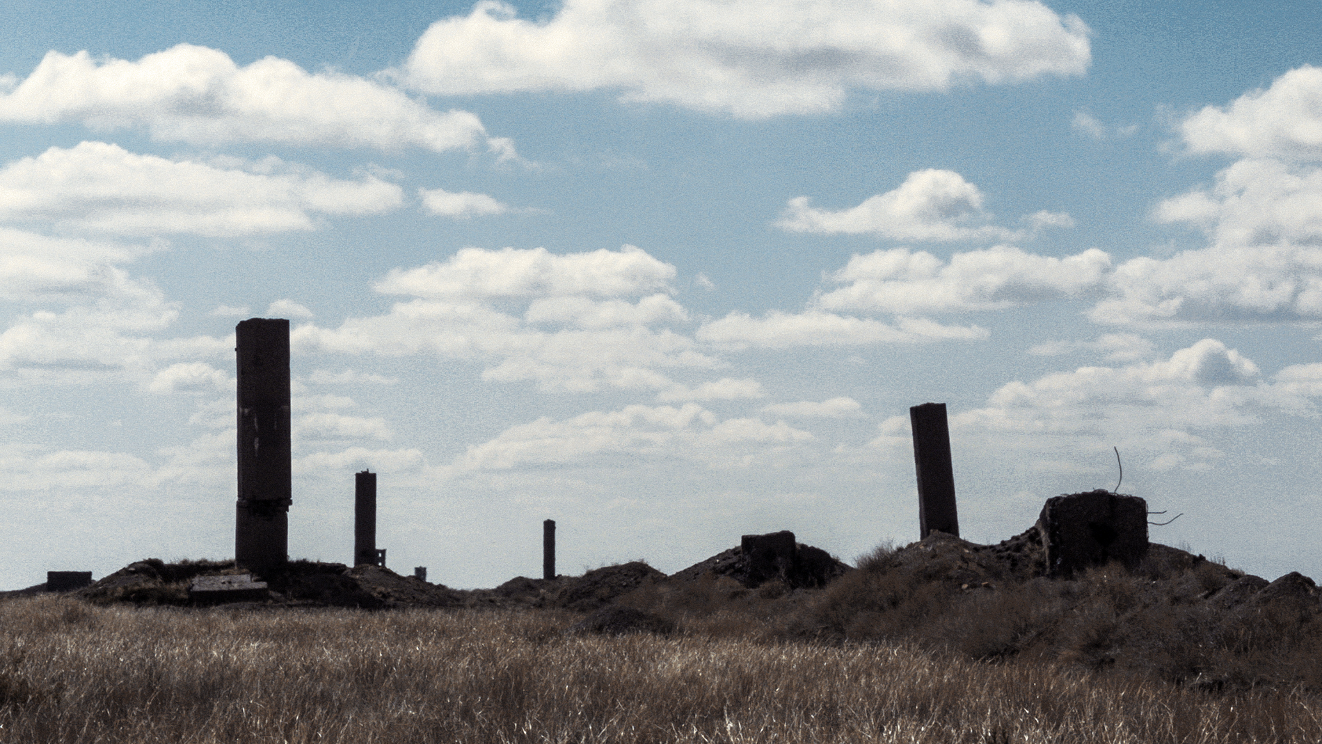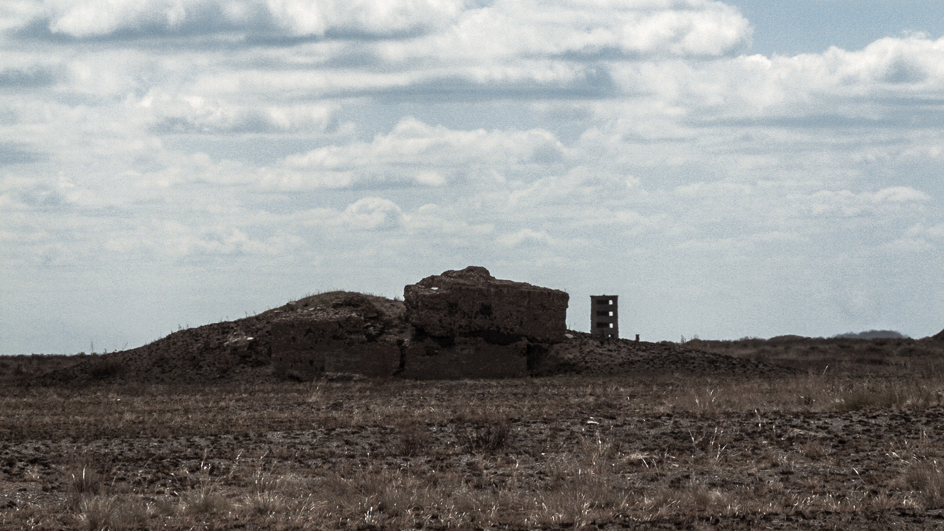 ​Transporting the viewer into a world of post-atomic aftermaths, Charrière’s 2014 film Somewhere revolves around the Soviet nuclear test site, Semipalatinsk. In its meditative, trance-like style he embeds the somber mood of the test site, simultaneously referencing the cinematography of science-fiction films. The landscape is punctured by man-made scars, the remaining buildings from the test site, the forever reminders of the past. These objects are among the first unintended permanent monuments of the anthropocene––a post-human architecture of the bomb located in an environment too toxic for people to visit safely for longer than thirty minutes without protective gear. Like a broken sundial, the structures spiral outwards, arranged to gauge the intensity of nuclear explosions. The film shifts from eye-level views, soaring through the sky until it reaches the sun in a blaze of fire, everything consumed by an overwhelming white glow. What may have appeared as temples to scientific progress are now seen as merely rocks in the grass––the myth Icarus made concrete.