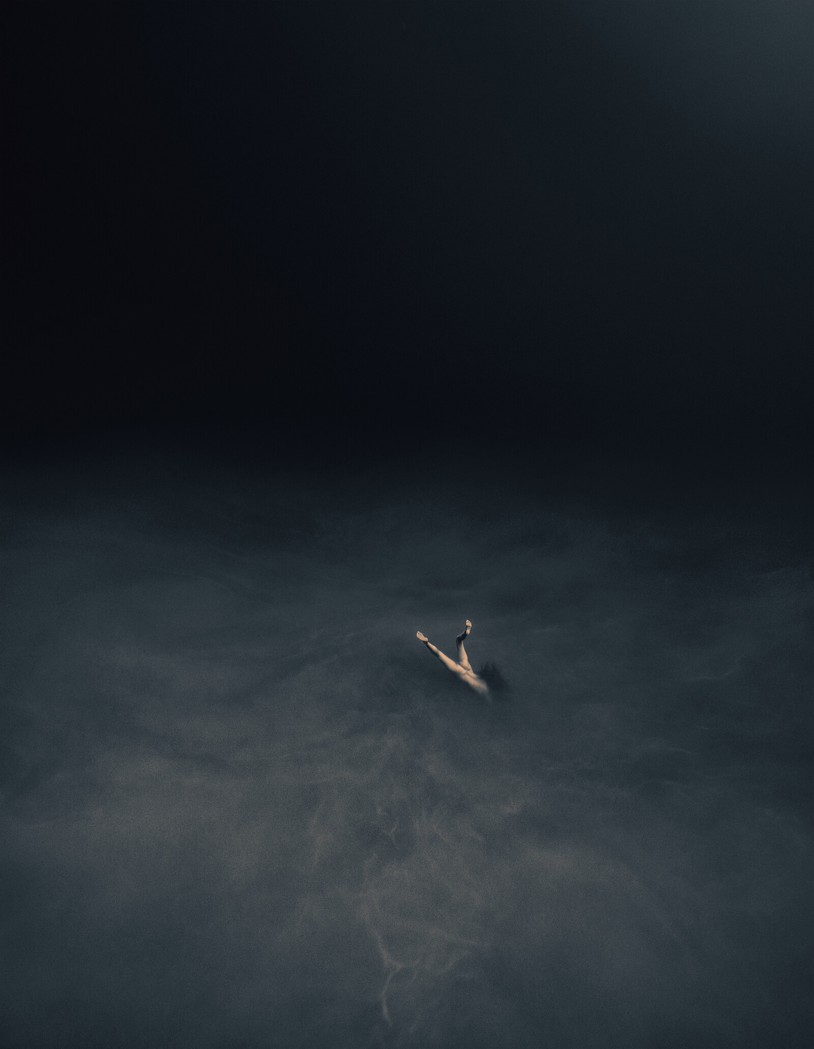 In his photographic series Where Waters Meet Charrière captured naked free divers descending into the abyss of aquatic caves in Mexico known as Cenotes. As the divers’ bodies are penetrating a chemocline - an obscure and uncanny layer of bottom water full of sulphurous bacteria - they are dissolving both in pictorial and metaphorical terms and are sinking not only deeper towards the bottom of the sea but also into their psyche, entering a state of being one with your surroundings which is often referred to as “oceanic feeling.”