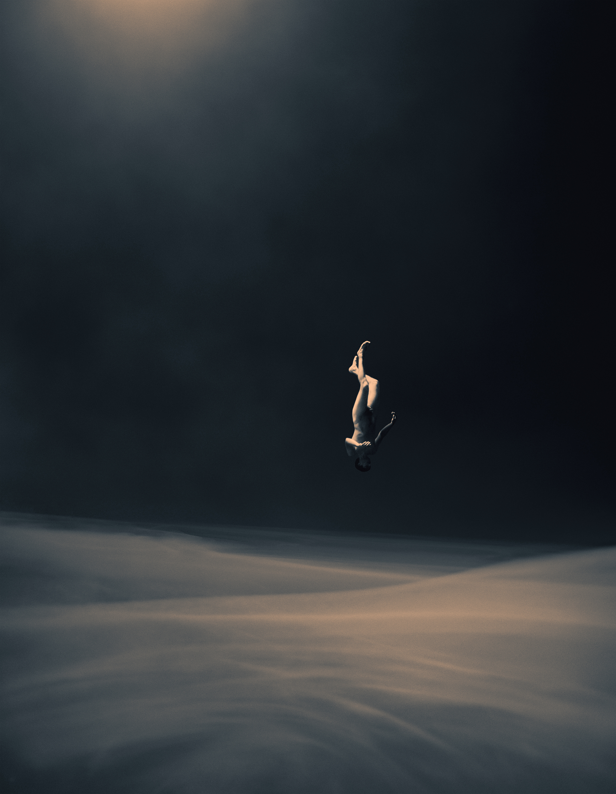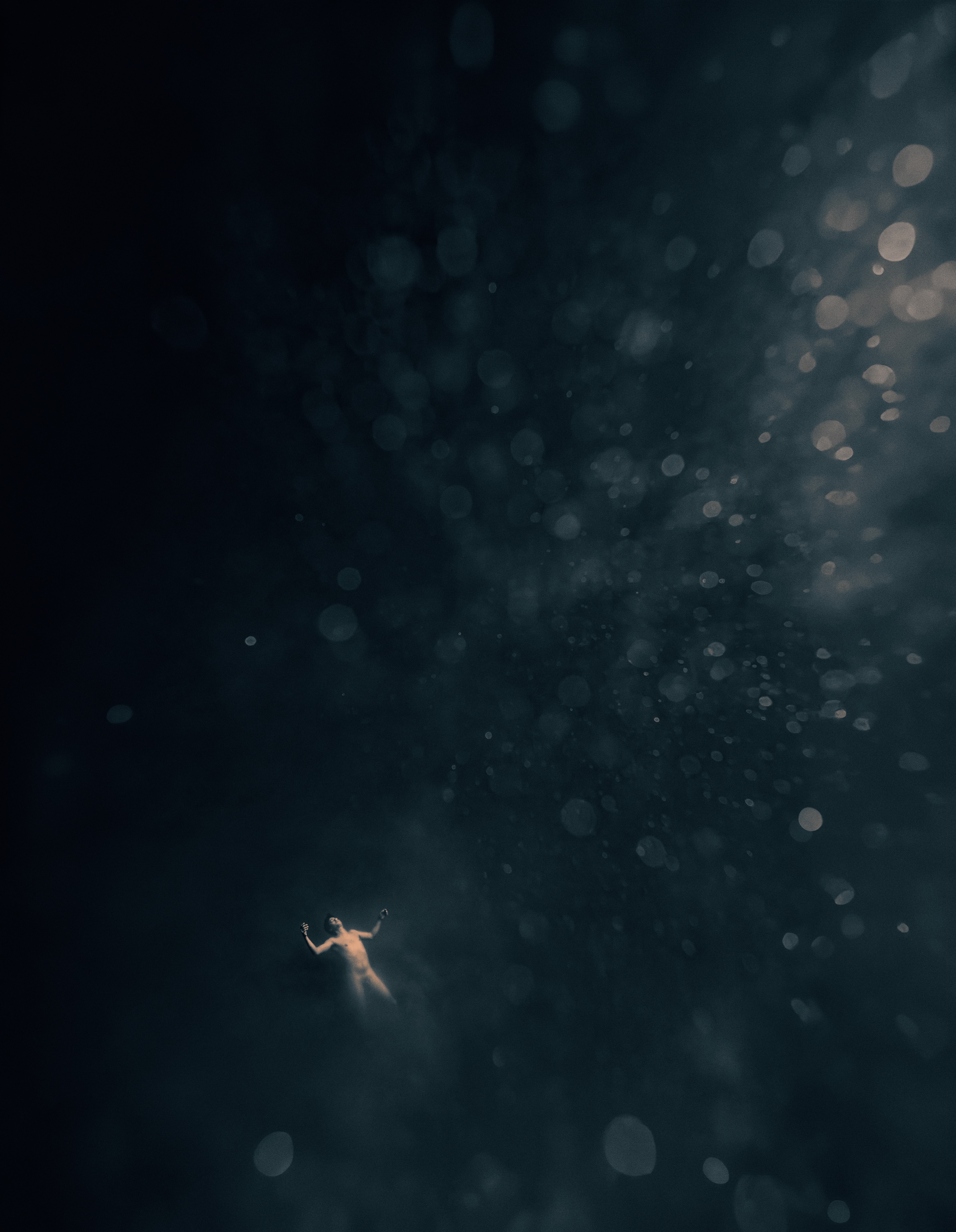 In his photographic series Where Waters Meet Charrière captured naked free divers descending into the abyss of aquatic caves in Mexico known as Cenotes. As the divers’ bodies are penetrating a chemocline—an obscure and uncanny layer of bottom water full of sulphurous bacteria—they are dissolving both in pictorial and metaphorical terms and are sinking not only deeper towards the bottom of the sea but also into their psyche, entering a state of being one with your surroundings which is often referred to as “oceanic feeling.”