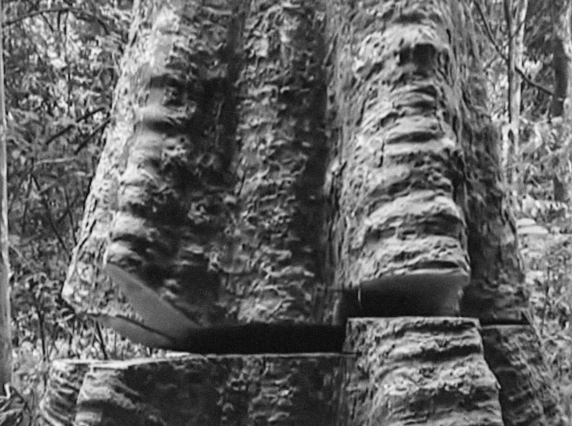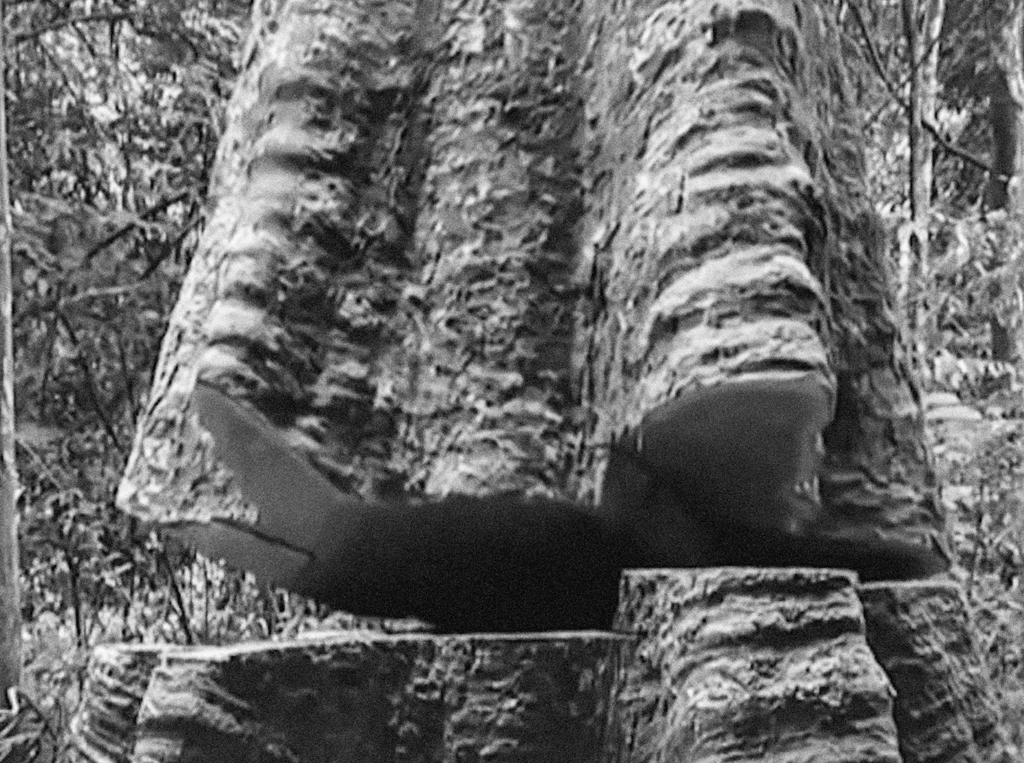 Ever Since We Crawled Out confronts the tumultuous relationship between humans and the finite resources the planet has to offer. Using black-and-white found-footage from film archives, the film highlights this topic through an endless montage of countless trees being chopped down, one after another after another—lingering on the climactic seconds before the trees succumb to gravity and meet their end on the ground. Creaking and moaning as they resist their fate, we are shown a process which we benefit from every day but rarely think of the difficult process which yields our conveniences. As the crack widens almost like mouth of a gluttonous figure preparing to consume something large, you can see the age lines of the tree, the time line of an individual which makes up an environment rapidly being destroyed, presumably for the sake of enterprise and commerce, either to be turned into pulp or to merely clear the valuable land. Once one tree starts falling, they all tumble like dominos. People only appear in a handful of shots—running, afraid to be confronted with the reality of their actions. After the trees fall, take a moment to settle, stray leaves falling down after it, an eerie silence only disturbed by the sound of wind rushing through the remaining trees which will be the next to go.