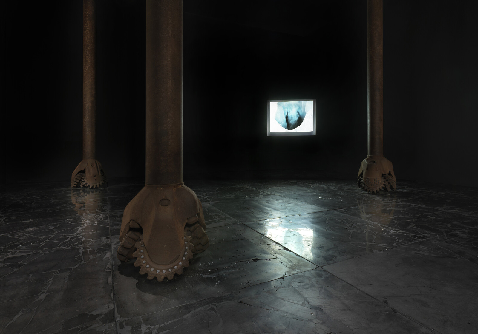 The sky grows heavy, thickened by the excess carbon dioxide that has been injected into the air since the Industrial Revolution. Its invisible weight—looming over us like a leaden shadow—is the starting point of Julian Charrière’s work. How not merely to represent an environment but to unveil the medium that we move through, and which simultaneously moves through us—that is the cosmological question at stake. Charrière’s work addresses the fading of a modern world-vision that sought to free itself from natural constraints and its transformation in the face of an increasingly dense atmosphere. In its place, he negotiates an image of the world that we can no longer traverse as freely or carelessly, slowed by the density of unregulated carbon emissions that surround us.