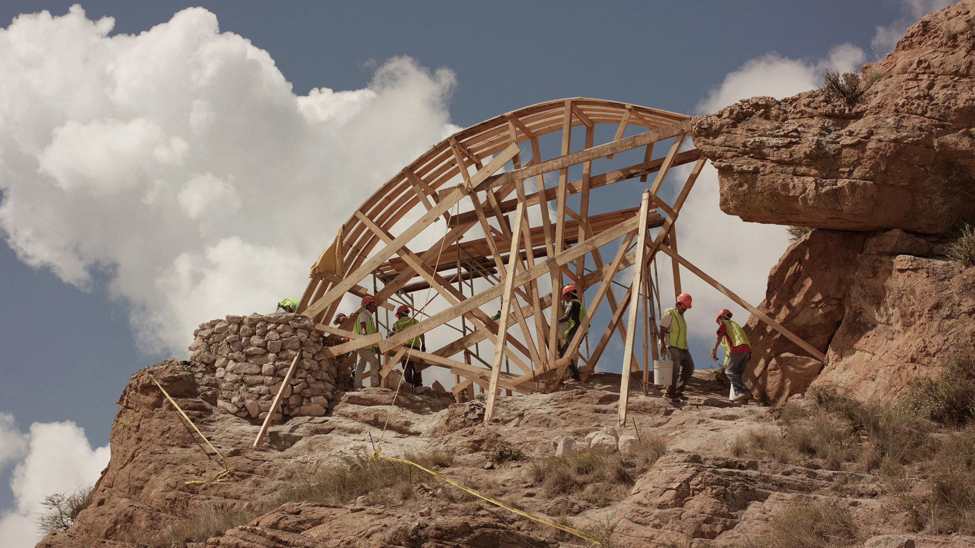 In reality it is a different story. The actual explosion of the arch does not occur in Utah but in Mexico, with an artificial counterpart. In a very detail-oriented process, the arch is re-created with coloured concrete. The explosion is staged in a controlled manner with the assistance of a local production team.