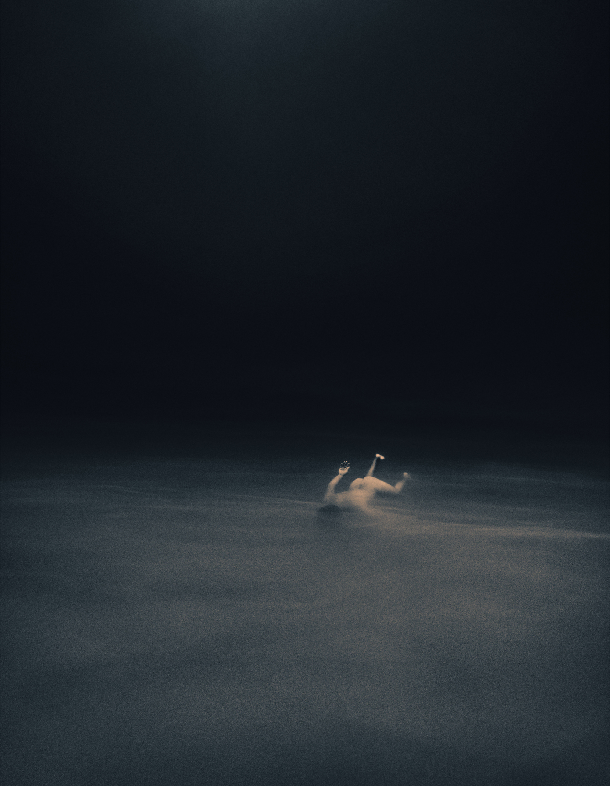 In his photographic series Where Waters Meet Charrière captured naked free divers descending into the abyss of aquatic caves in Mexico known as Cenotes. As the divers’ bodies are penetrating a chemocline—an obscure and uncanny layer of bottom water full of sulphurous bacteria—they are dissolving both in pictorial and metaphorical terms and are sinking not only deeper towards the bottom of the sea but also into their psyche, entering a state of being one with your surroundings which is often referred to as “oceanic feeling.”